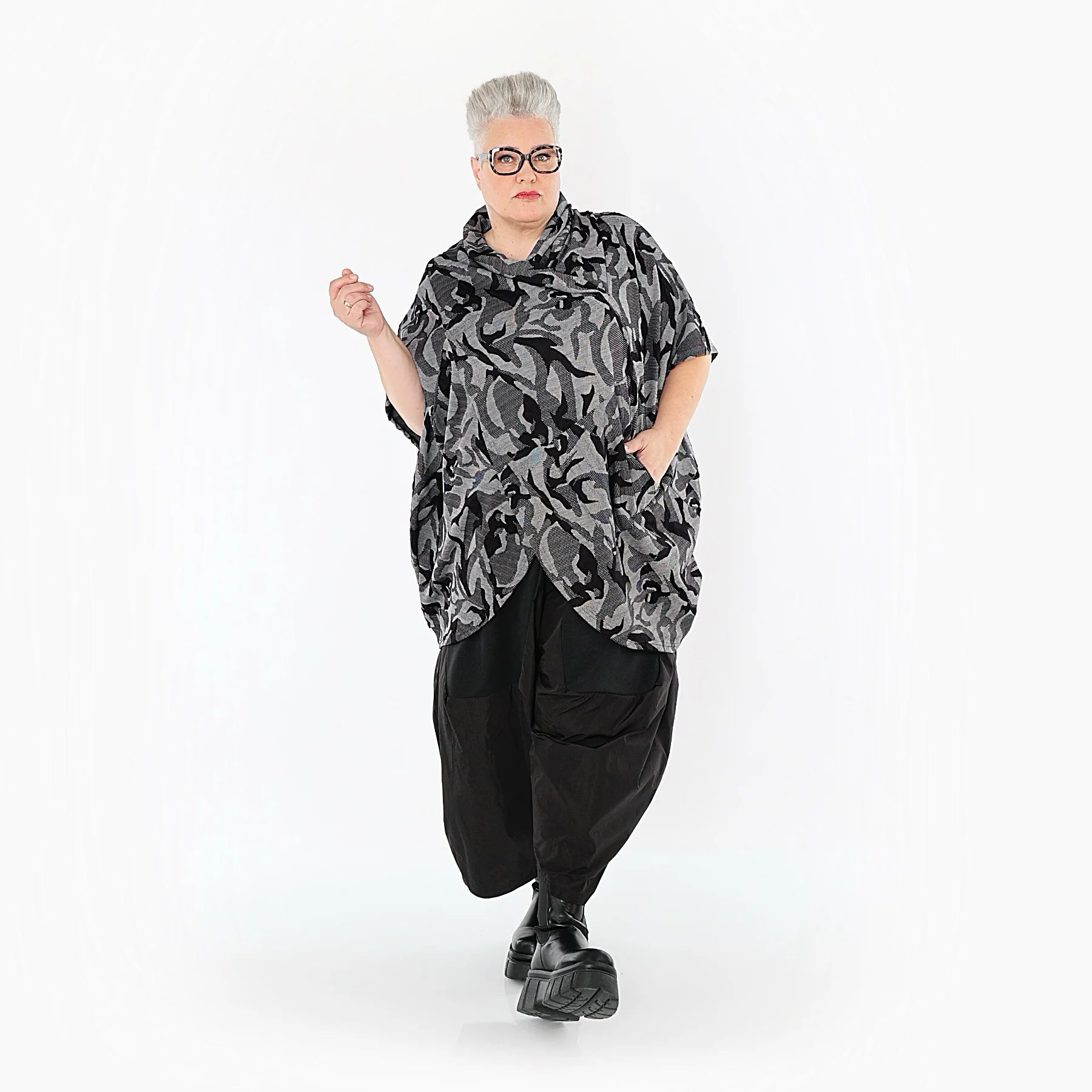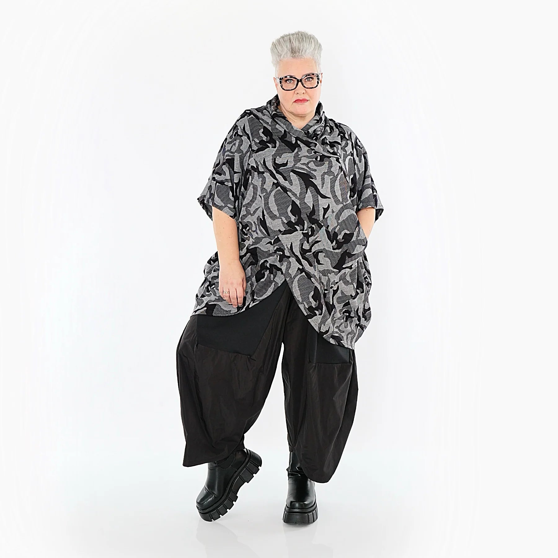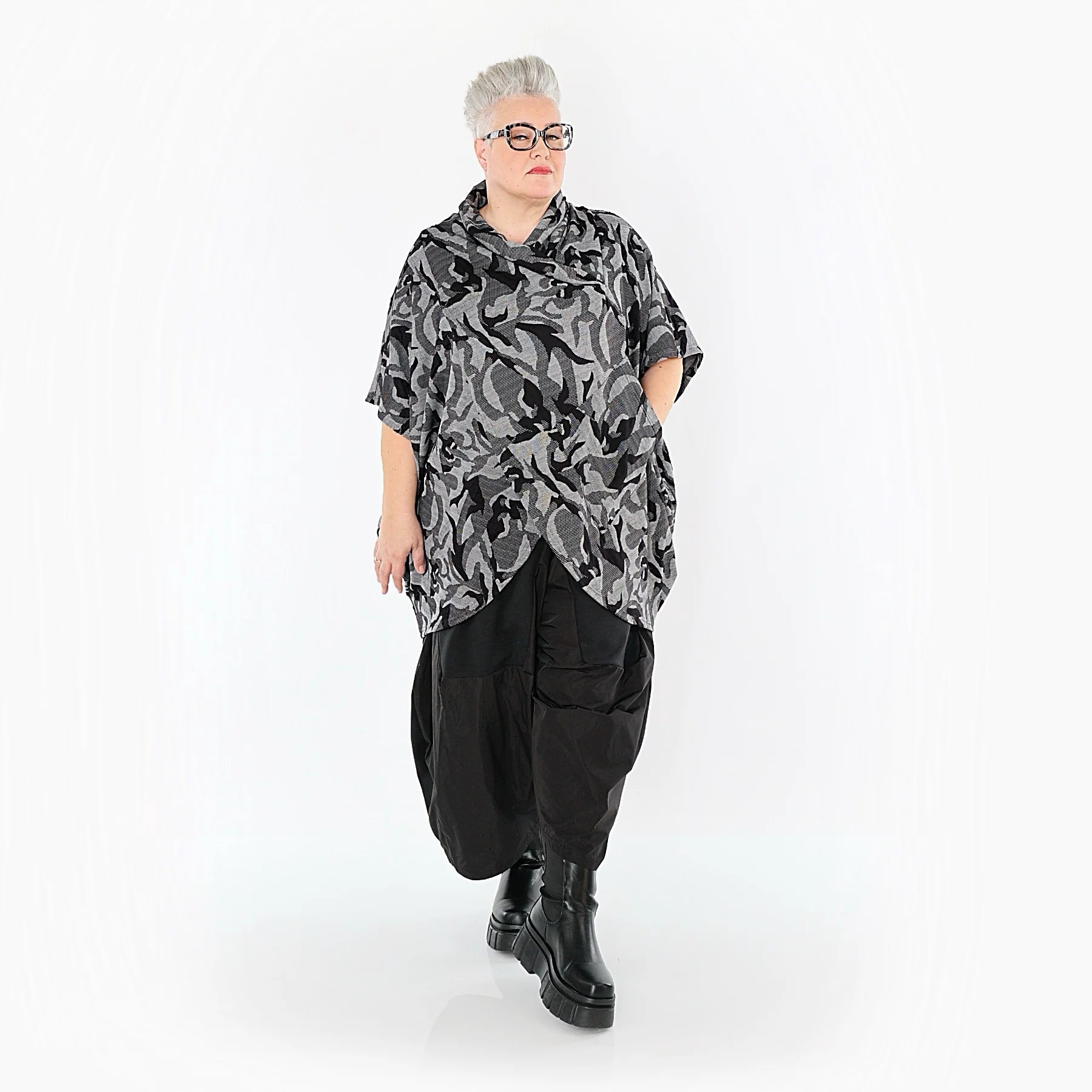 Unser Model Regina trägt Konfektionsgröße 48-52 und ist 166 cm groß. Sie kann fast alle AKH-Modelle wunderbar im Oversize-Stil tragen. Überzeuge dich selbst und schau dir unbedingt weitere tolle Teile von AKH Fashion!